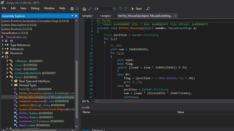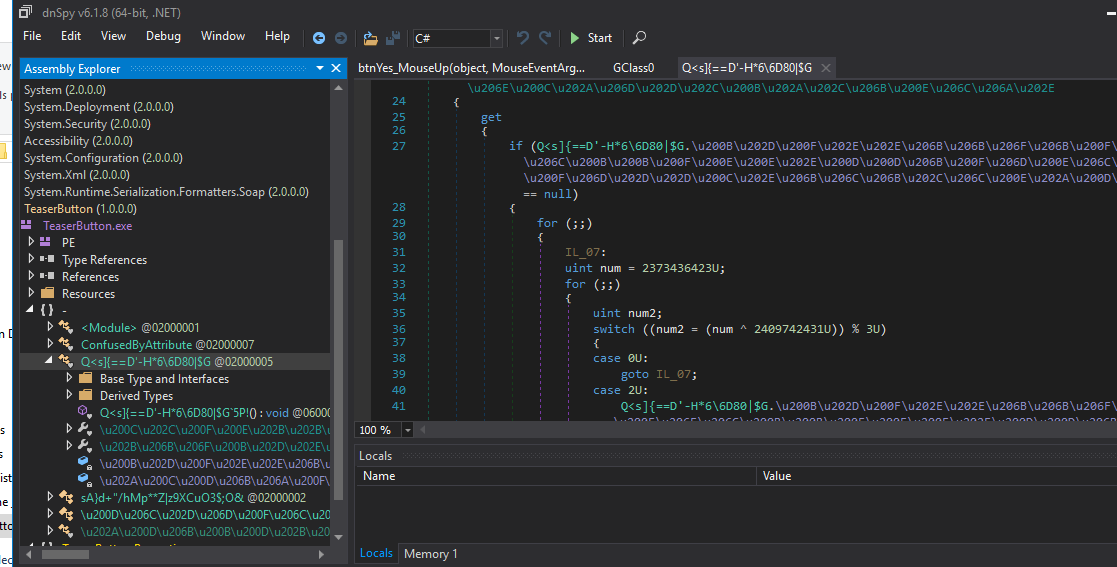 as we can see it is too hard to understand the code because it is confused, so I tried to unpack it with de4dot tool..