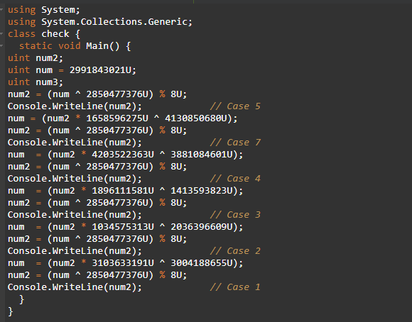 as we can see the code will start with Case number 5 ,then go to 7, after that it will go to 4,3,2,1 :